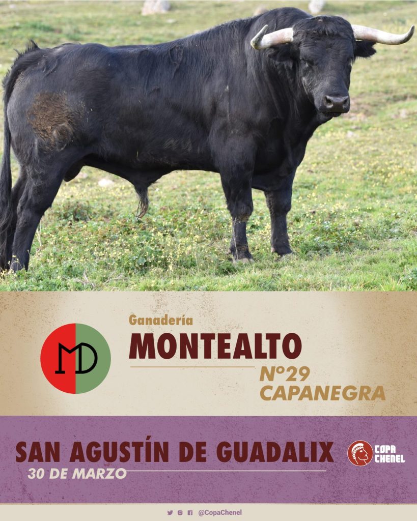 Montealto vuelve a una de sus plaza fetiche en la Comunidad de Madrid. El año pasado echaron el mejor toro de la Copa Chenel, «Farolero» de nombres y las esperanzas de la casa que comanda Agustín Montes están en traer una corrida muy similar. Los animales reseñados son los siguientes: